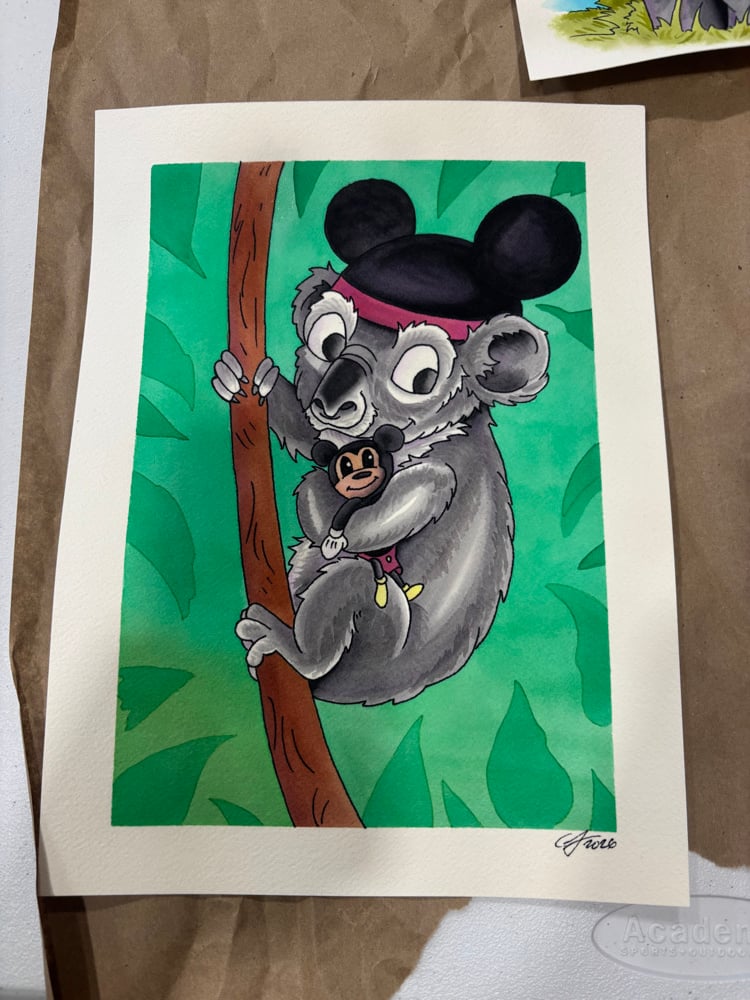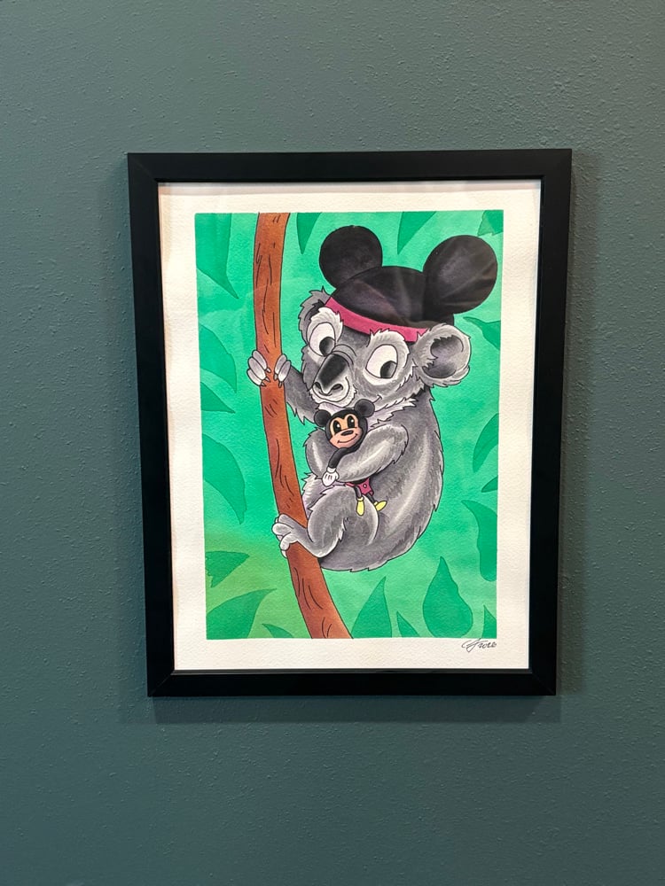 Even in the wild, you bring your best buddy.This adventurous koala is geared up, Mickey ears on, and holding tight to his favorite little icon.