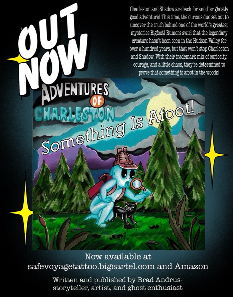Charleston and Shadow are back for another ghostly good adventure! This time, the curious duo set out to uncover the truth behind one of the world's greatest mysteries Bigfoot! Rumors swirl that the legendary creature hasn't been seen in the Hudson Valley for over a hundred years, but that won't stop Charleston and Shadow. With their trademark mix of curiosity, courage, and a little chaos, they're determined to prove that something is afoot in the woods!